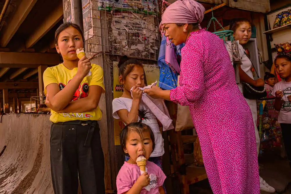 The dominant religion is Islam, which can be seen in the way women dress. The society is a mix of several ethnic groups 74.1% Kyrgyz, 14.8% Uzbeks, 5.0% Russian .My attention was focused on the observation of women, their lifestyle, their place in society.