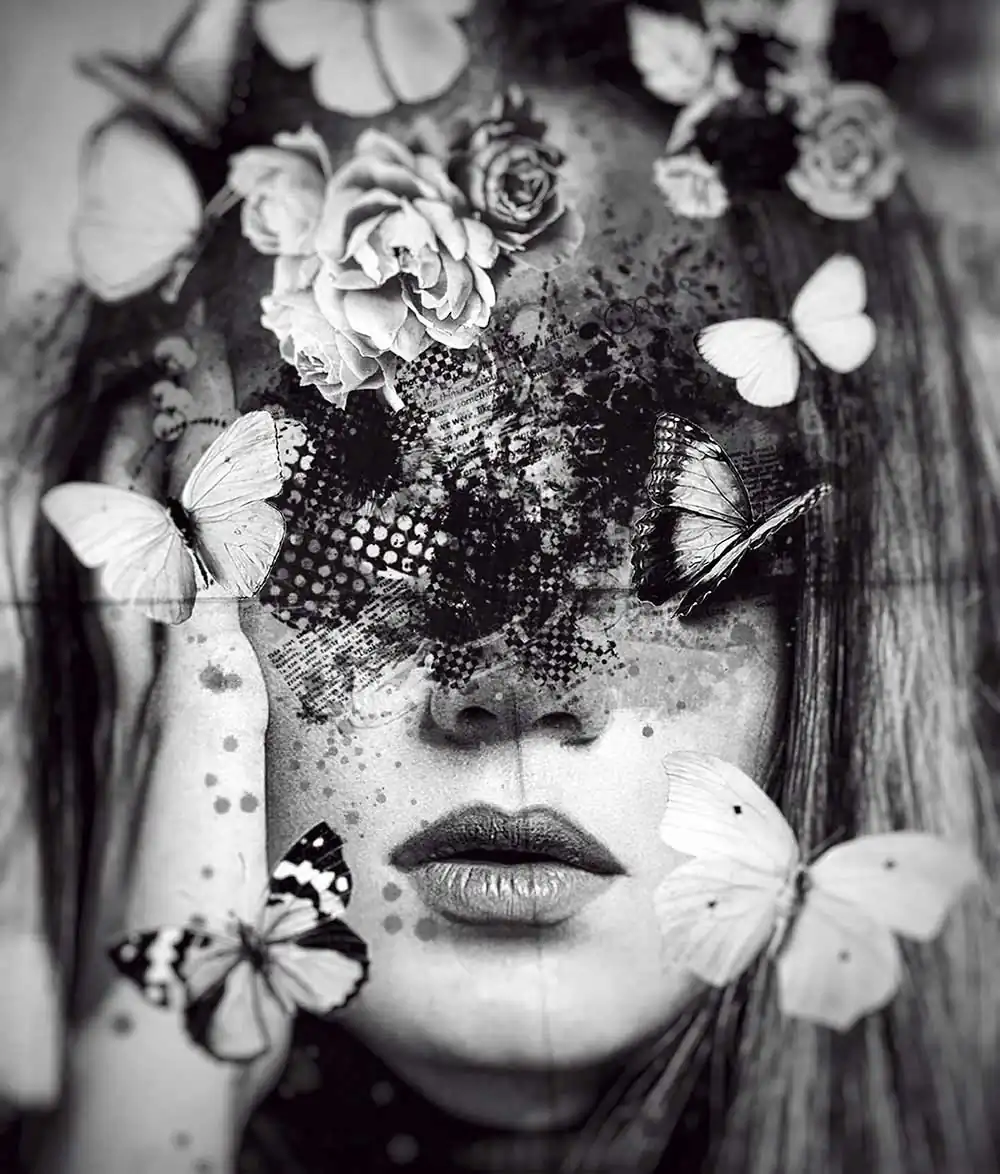 To those loves lived in the shadows and never declared, to those words never spoken that leave scars in the soul and bridge the dreams. My photographic series is made up of faces of women in the shadows, faces that take on masks or hide. This series wants to be an experiment a bridge between photography and graphics that reflects a lot my way of seeing photography today, as something that goes beyond the limit of pure means to embrace something different by combining a collage with words and drawings, by superimposing graphic and photographic elements, I wanted to express a Dadaist poem out of the simple and pure concept of photography, to embrace dreams, to express emotions in this way.