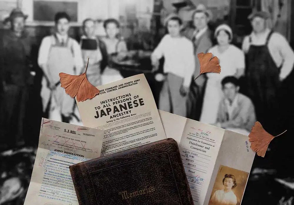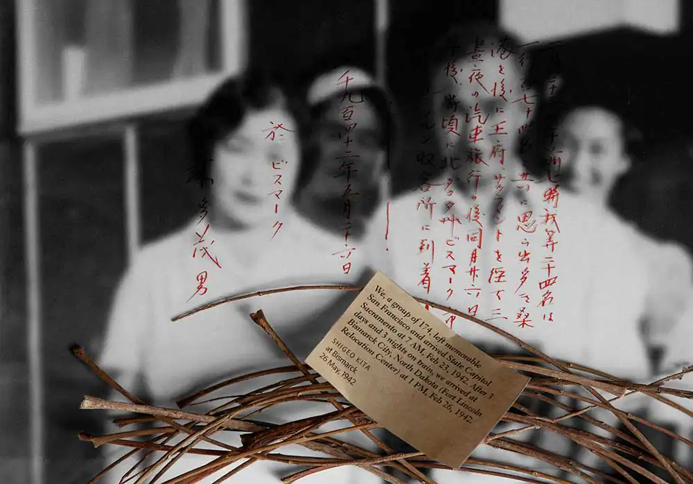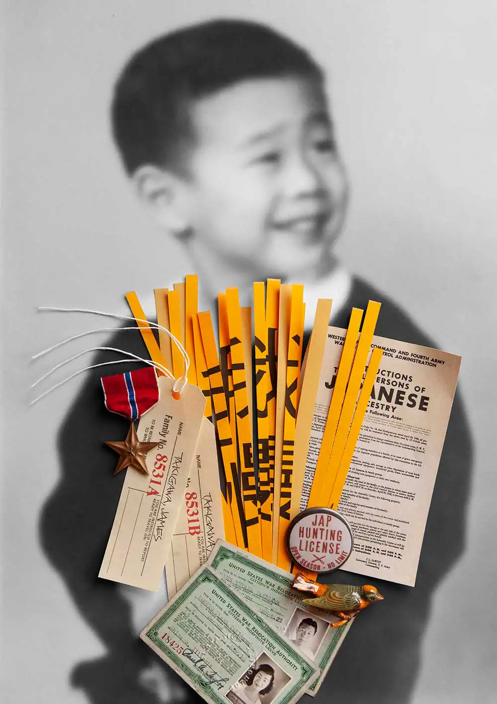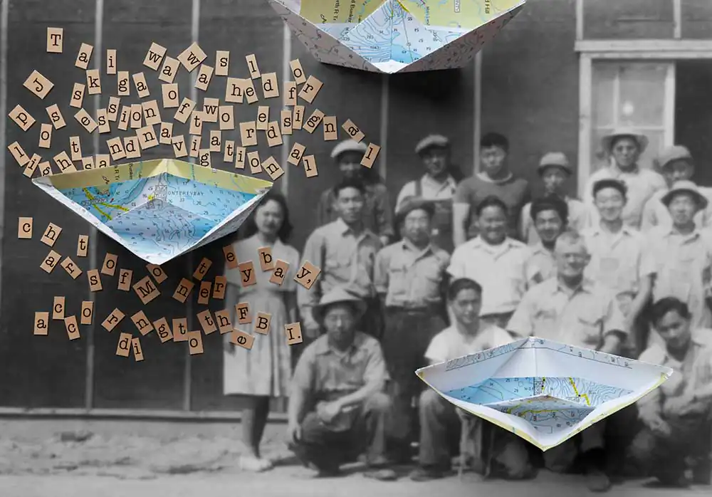 Awakened by a discovery of old family photographs taken in an Arkansas concentration camp, Takigawa was compelled to speak out in contrast to his parents’ fearful silence on the matter. He created a visual journey through collaged photographs using artifacts, documents, and memories, resulting in a distinctive telling of one family’s journey from immigration to incarceration, and re-assimilation. The stories contained in his narrative humanize the historical record. Takigawa gives voice to the story his family kept hidden through a unique Japanese practice known as “gaman” (enduring the seemingly unbearable with patience and dignity). The process of researching and creating these images informed and augmented Takigawa’s understanding of what happened in the past—and of human rights abuses today.