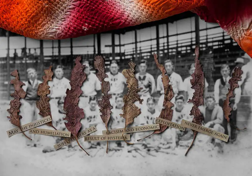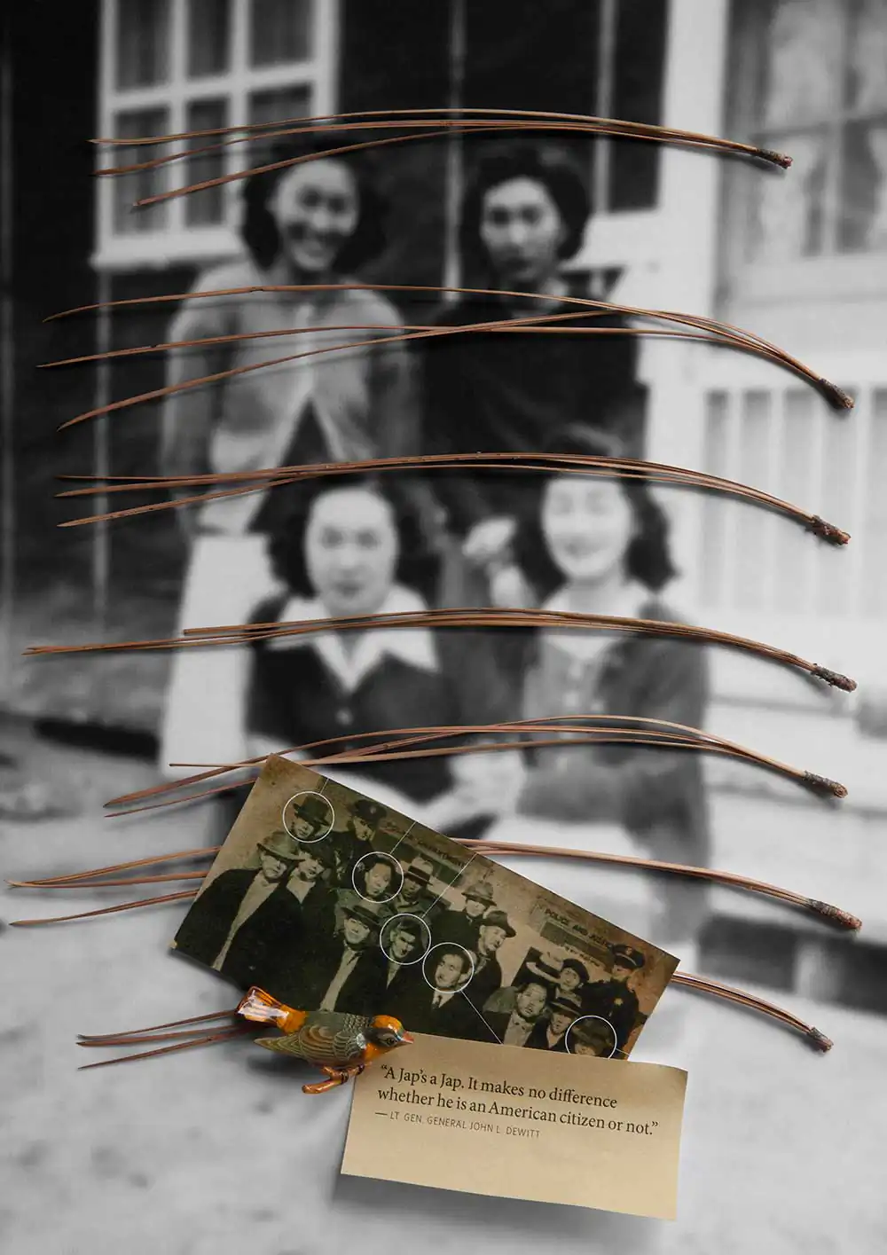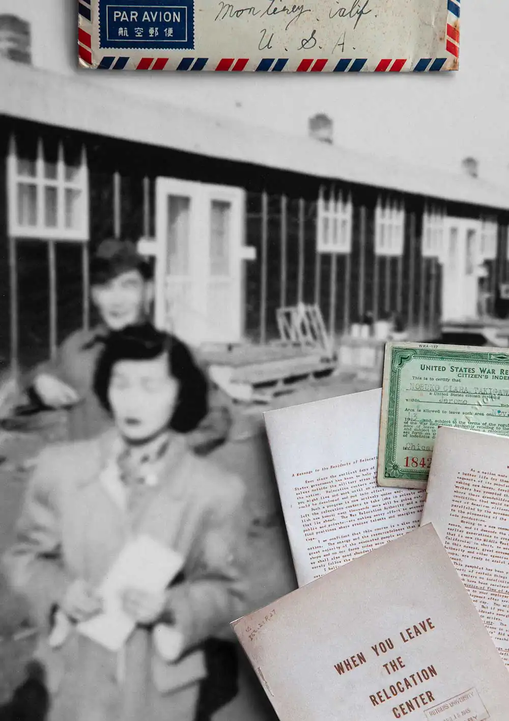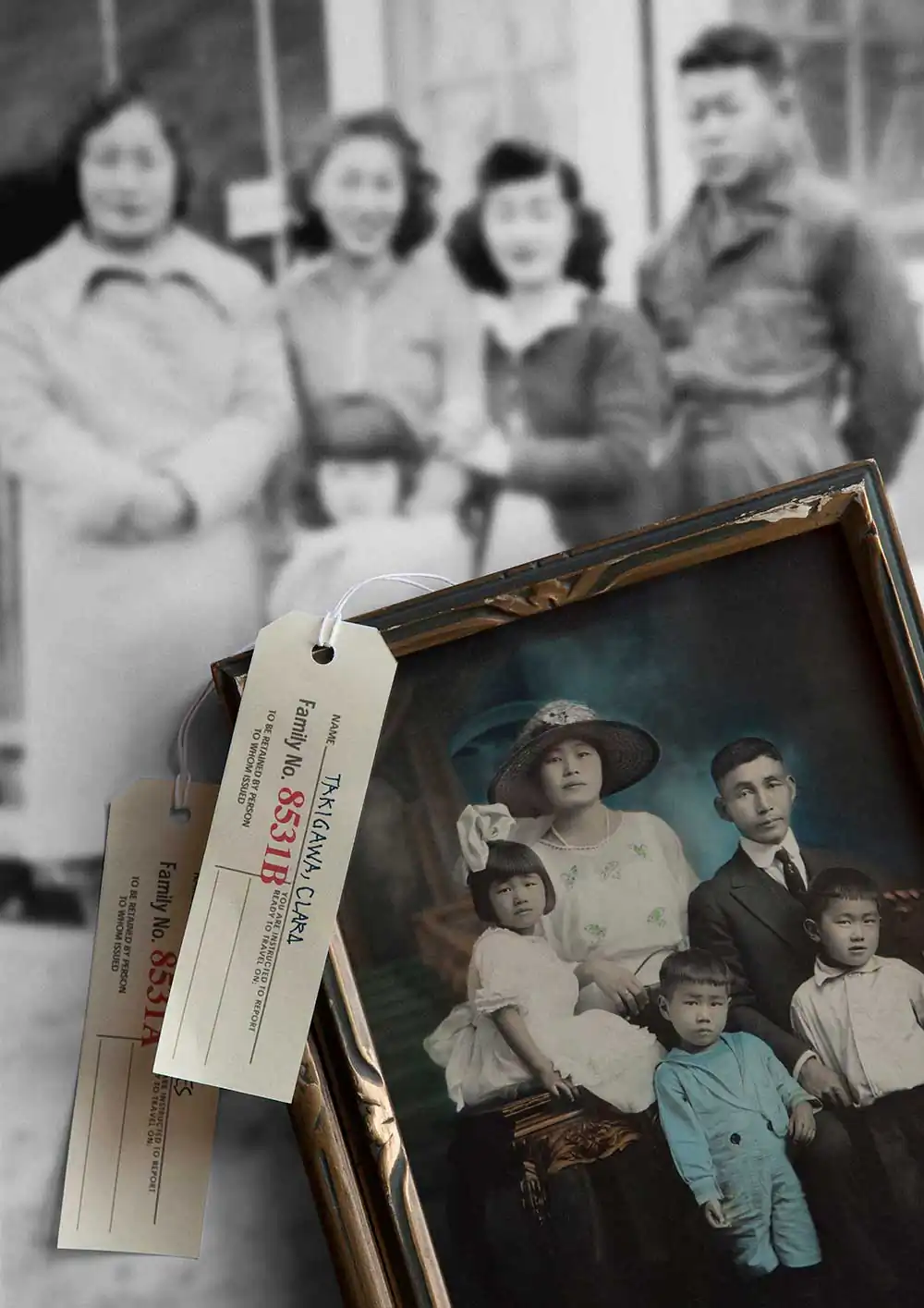 Awakened by a discovery of old family photographs taken in an Arkansas concentration camp, Takigawa was compelled to speak out in contrast to his parents’ fearful silence on the matter. He created a visual journey through collaged photographs using artifacts, documents, and memories, resulting in a distinctive telling of one family’s journey from immigration to incarceration, and re-assimilation. The stories contained in his narrative humanize the historical record. Takigawa gives voice to the story his family kept hidden through a unique Japanese practice known as “gaman” (enduring the seemingly unbearable with patience and dignity). The process of researching and creating these images informed and augmented Takigawa’s understanding of what happened in the past—and of human rights abuses today.