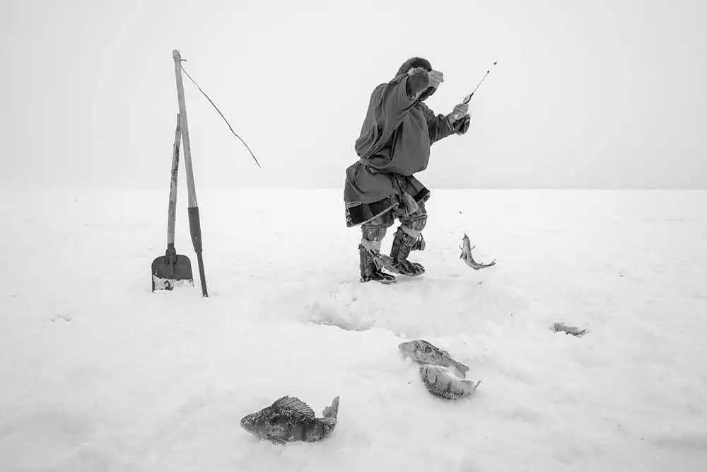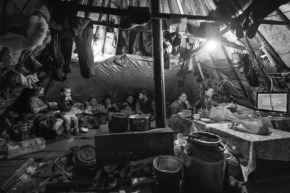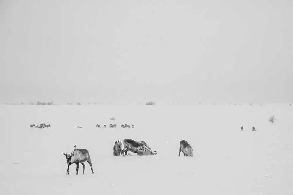 The Yamal Peninsula: a stretch of peatland that extends from northern Siberia into the Kara Sea, far above the Arctic Circle. To the east lie the shallow waters of the Gulf of Ob; to the west, the Baydaratskaya Bay, which is ice-covered for most of the year.  Nenets herders move with their reindeer in search of food, moving along ancient migratory routes. In summer as in winter, when the temperature often reaches -50 ° C.