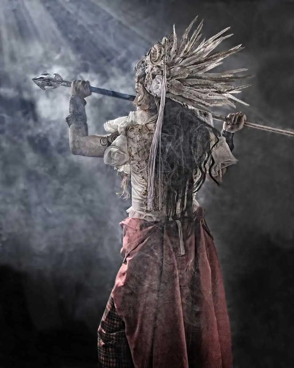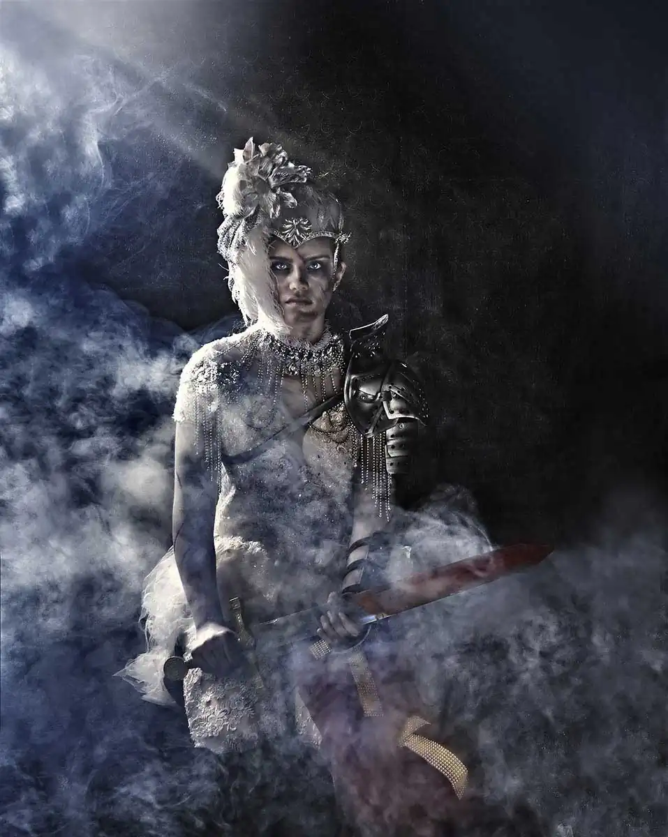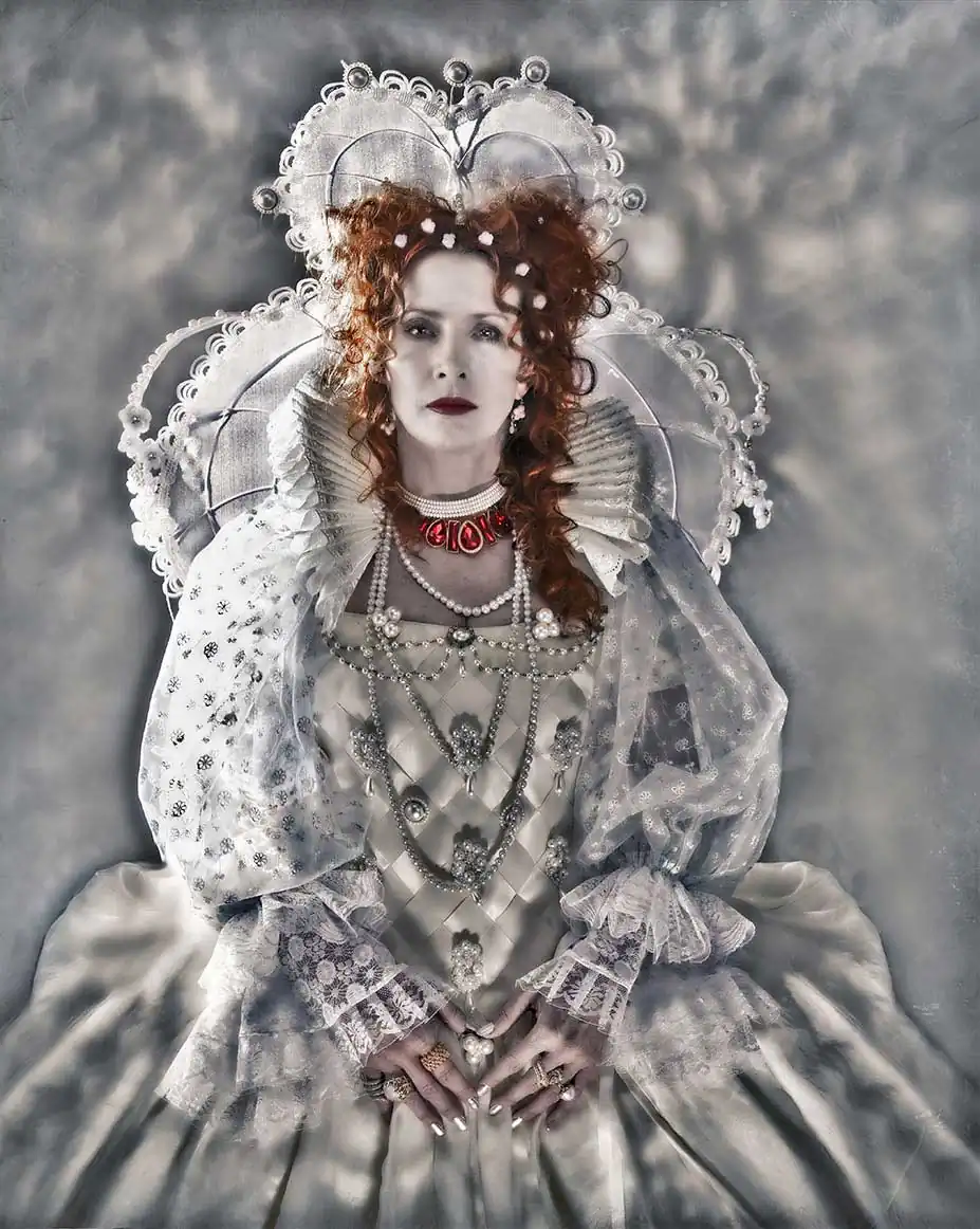 I started to dig into different leaders’ lives through history, I could identify with so many aspects and fights these warriors had to make. I decided I had to portray them. Why leaders? Why Your Majesty the Queen? Well, just because a governor has to be standing no matter what. Too many decisions depend on him/her. There is an implication of presence in a ruler’s life. That is what I needed, to be present again. I had to go through them and bring my models along. It was a profound, personal and intense work. So every photograph I made, choosing about twenty-five female leaders was a tribute to my mother, and a healing to myself. I created more than a hundred images that led me to a self-confrontation and acceptance of what I was going through.