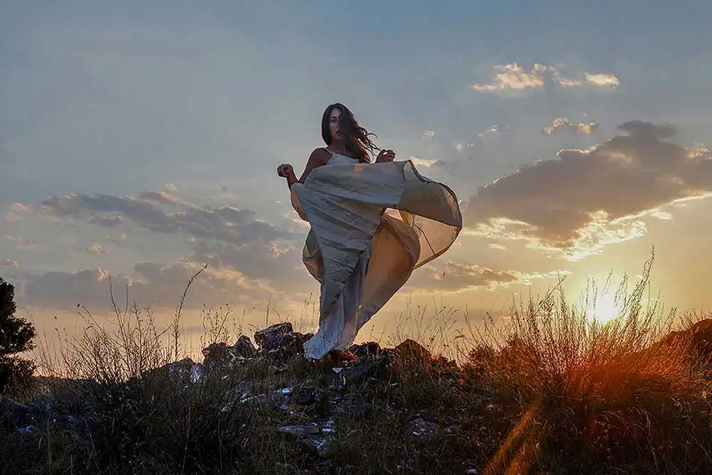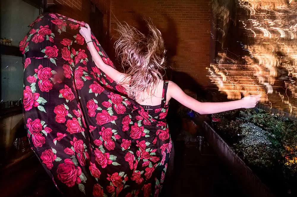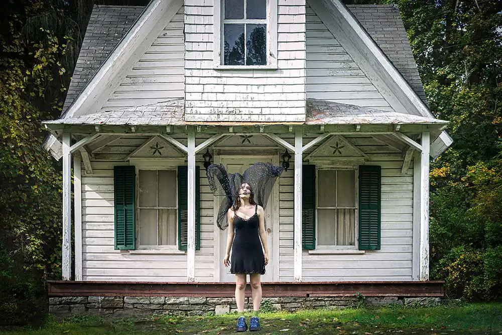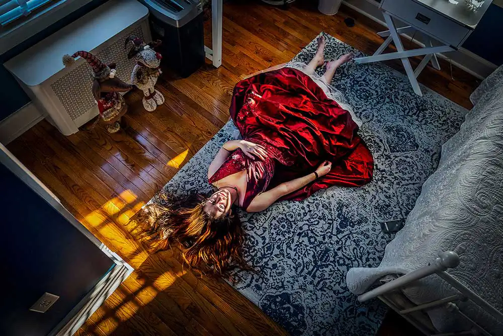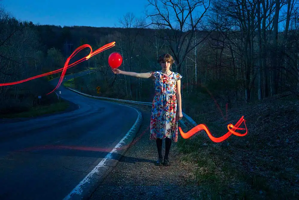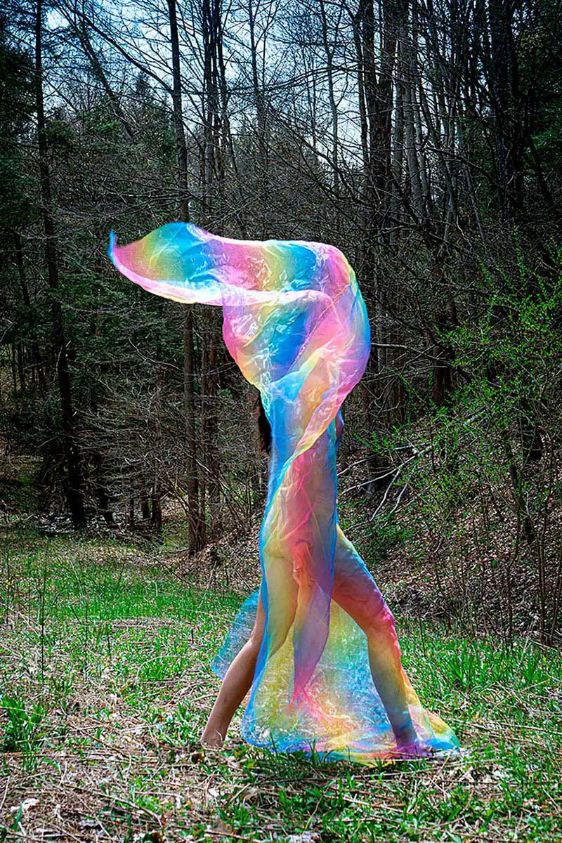 My photographs are staged narratives in which I scout for locations, dress my friends and family, then photograph them in a manner that refutes reality. I am always chasing ethereal beauty, creating it if it isn’t there, and I like the tension between the magical and the mundane. I use costumes, light, color, movement, and reflective effects for a surreal and metaphysical quality.
