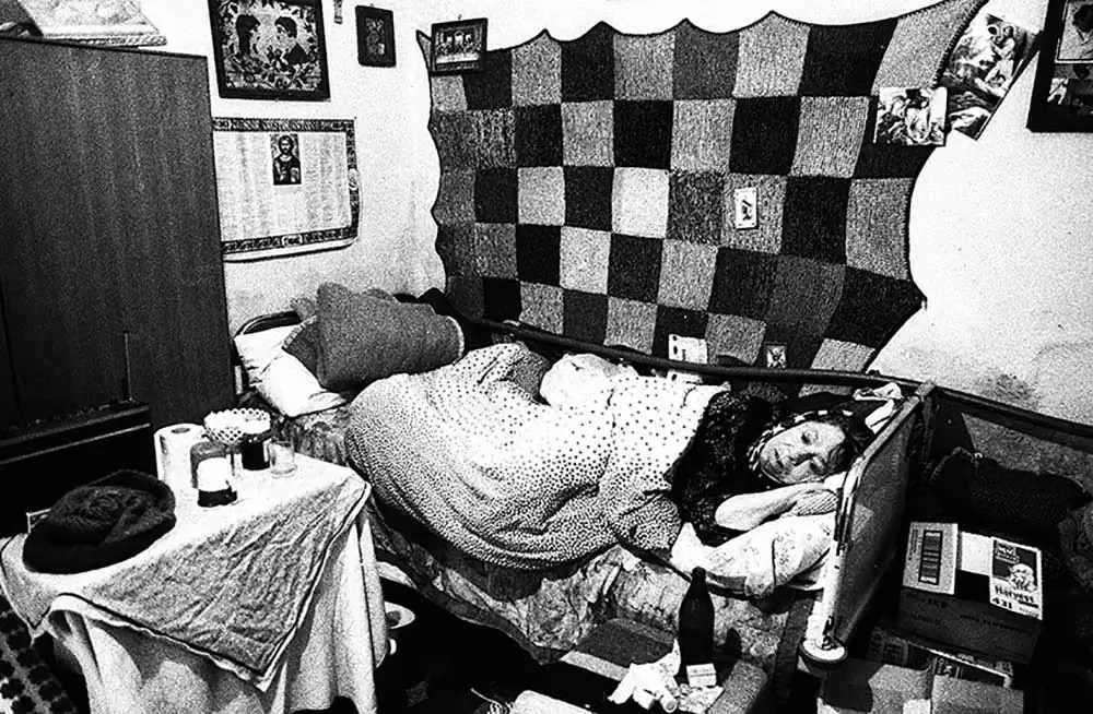 Pasha, Imma and Grisha don’t differentiate between hope, disillusion and sa- tisfaction for this situation which is nonetheless proclaimed by various national media as being almost eradicated.They all downplay this forced itinerary, they have violent memories of desocia- lisation that they associate with life on the outside. Some know the joys of a reconstructed family life thanks to the birth of rela- tionships that herald new beginnings outside the community. Several maintain links to the outside world via visiting volunteers and even the rare farmer of adjoining lands who has learnt to accept their presence, their existence.These fourteen remaining residents are intimately attached to this village that they erected and none mean to abandon this land whose future is uncertain due to budgetary restrictions and the deaths of these patients struck by “divine vengeance”.